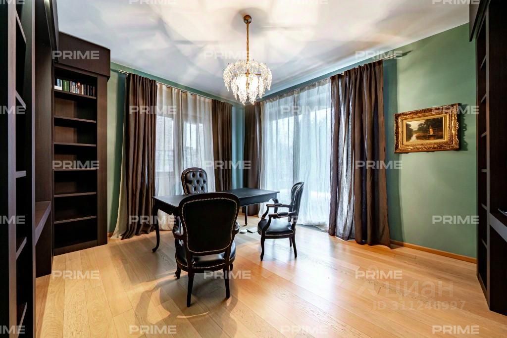 Лот: 104392. Предлагается загородный дом в классическом стиле площадью 750 кв.м под ключ с мебелью, расположенный в деревне ''Баковка'', в пешей доступности от Мещерского парка и всего в 5 км от МКАД. На первом уровне (цоколь) находится бильярдная, джакузи, два санузла, котельная, блок для персонала. Второй уровень занимает гостиная, совмещенная с кухней, спальня, санузел, холл, прихожая. Третий уровень включает в себя четыре спальни, одна из которых со своим санузлом, три санузла, две душевые, холл. Четвертый уровень (мансарда) отведен под бильярдную и помещение свободного назначения. На придомовой территории 28 соток отдельно построен гостевой дом 80 кв.м, а также дом для охраны 140 кв.м с парковка на пять машино-мест. Огороженная территория. В поселке хорошая роза ветров и чистый воздух за счет расположения рядом с лучшим парком Московской области. Максимально удобный подъезд с Минского, Боровского, Сколковского шоссе.