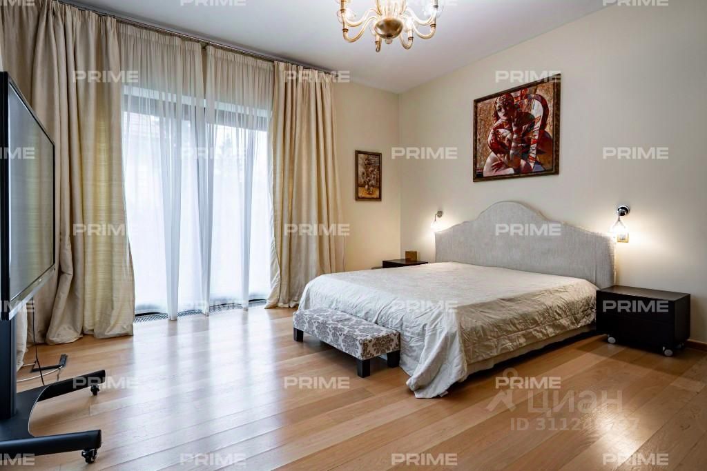 ID 584457 Кирпичный коттедж в охраняемом камерном (6 домов) поселке ''Ирбис'' на Рублёво-Успенском шоссе (24 км, с. Иславское) Коттедж 376 м² на участке 12 соток с гаражом на 2 авто, террасой 40 м² и полной инфраструктурой для комфортной жизни. Ключевые преимущества: Просторная планировка: 2 этажа + мансарда + отапливаемый подвал 100 м² Готовая инфраструктура: квартира с отдельным входом для персонала, летняя беседка с печью-мангалом Высокий уровень оснащения: мебель, техника Miele, Siemens, кондиционеры, оптоволоконный интернет Коммуникации: центральная канализация, газ, электричество 20 кВт, скважина с системой EcoWater Безопасность: охраняемый камерный поселок Удобное расположение: 5 супермаркетов, школы, поликлиника, спортклубы в 1-2 км Планировка: 1 этаж: кухня-гостиная, квартира для персонала (с/у, отдельный вход), кладовые, котельная, гараж на 2 авто. 2 этаж: 3 спальни (мастер-спальня с выходом на террасу), 2 санузла (главный 25 м²), гардеробные. Мансарда: 2 гостевые комнаты, санузел, кладовая. Подвал: отапливаемое помещение свободной планировки. Участок 12 соток с летней беседкой идеальное место для отдыха и приема гостей. Номер объекта: #1/584457/14501