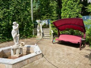 Номер в базе: J7831. Дом с частичной отделкой. Все стены оштукатурены, окрашены , обрамлены лепниной, инкрустированы сусальным золотом. Дубовые двери. Пол дубовый паркет. Установлены двухкамерные деревянные стеклопакеты . Произведена разводка электрики и водоснабжения .Цоколь: гараж с отдельным входом на четыре автомобиля , 10 комнат свободного назначения, два зала, винный погреб, бойлерная, щитовая, два санузла , постирочная, гладильная.Этаж 1: вестибюль , гостиная со вторым светом , столовая, каминный зал, комната отдыха, кухня, постирочная, гардиробная , спальня, зимний сад , 3 санузла , сауна , большой бассейн, 2 террасы.Этаж 2: 6 спален, четыре санузла , гостевая комната, два балкона и открытая терраса с балюстрадой и видом на парковую зону.Дополнительные строения: бассейн, гараж м\м