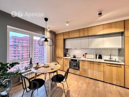 Сдаётся 3-комнатная квартира площадью 65 кв.м. с дизайнерским ремонтом на 11 этаже в 15-этажном доме. Из техники есть: Телевизор Духовой шкаф Стиральная машина Сушильная машина Холодильник Посудомоечная машина Кондиционер Микроволновка Дом - монолитный, одно окно выходит на соседний двор, второе окно выходит на детский сад. В подъезде 2 лифта - 1 грузовой и 1 пассажирский. Во дворе есть бесплатная парковка. Коммунальные услуги по счетчикам оплачиваются дополнительно.Предоплата за 1 месяц