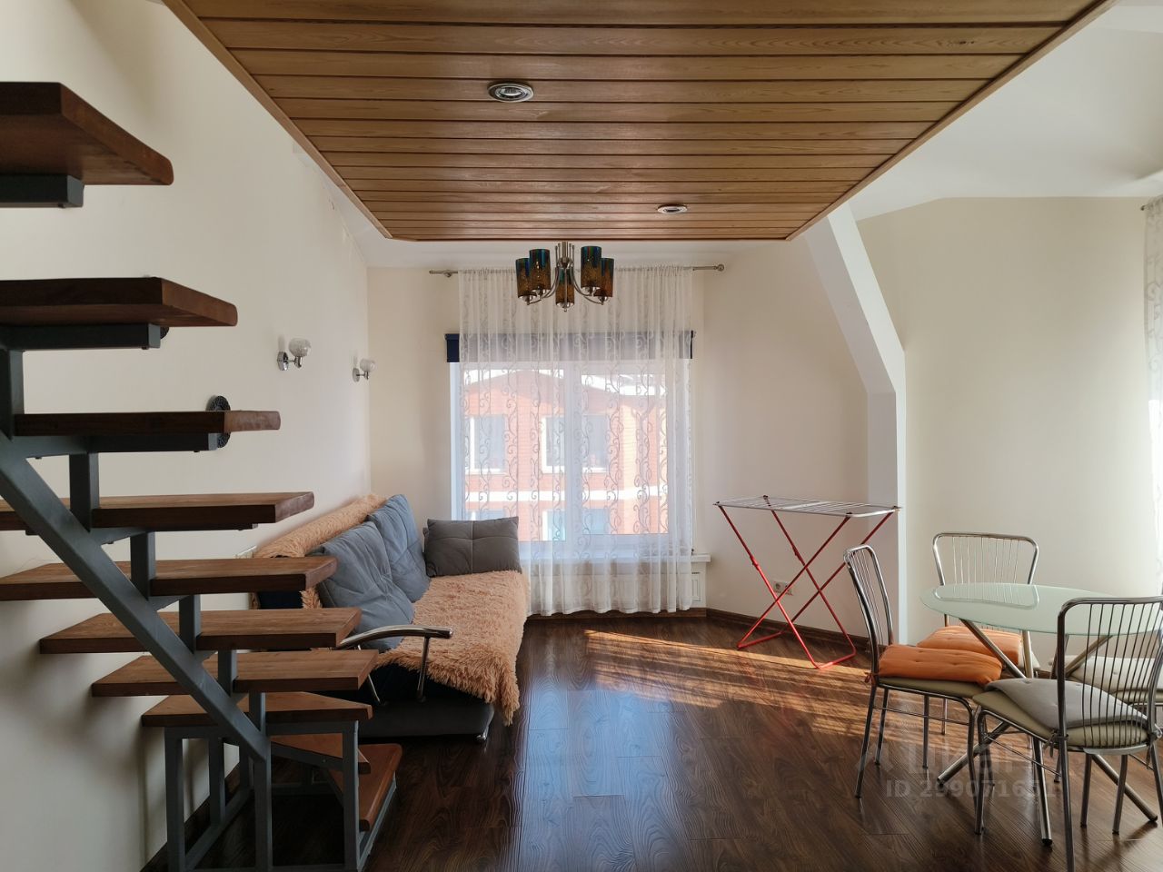 Светлая, теплая, уютная квартира. Санузел совмещенный, ванна. На 2- ом уровне спальное место. Кухонный гарнитур, диван столько на первом уровне.
