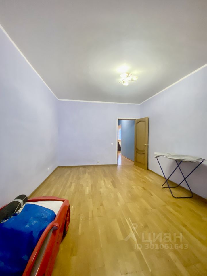 Общей площадью 97 кв. м., жилая площадь 57,8 кв. м., площадь кухни 13 кв. м., площадь комнат 25 кв. м +14,9 кв. м +17,9 кв. м. Высота потолков 2,8м. 2 застекленные лоджии. Санузел раздельный.