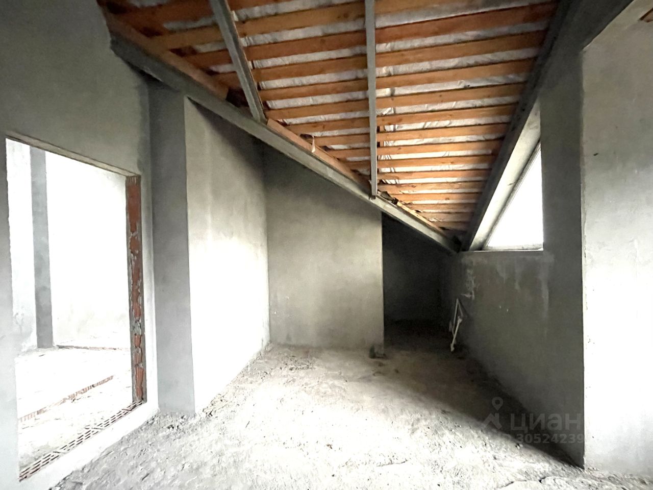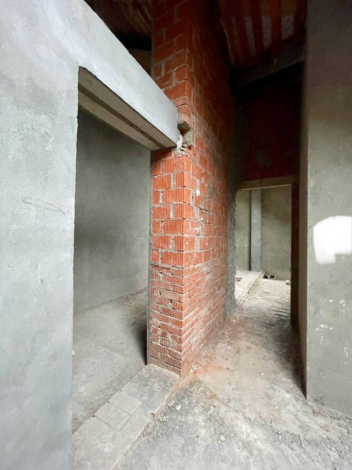 Железная лестница на второй этаж залита стяжка на первом и втором уровне, оштукатурены стены.