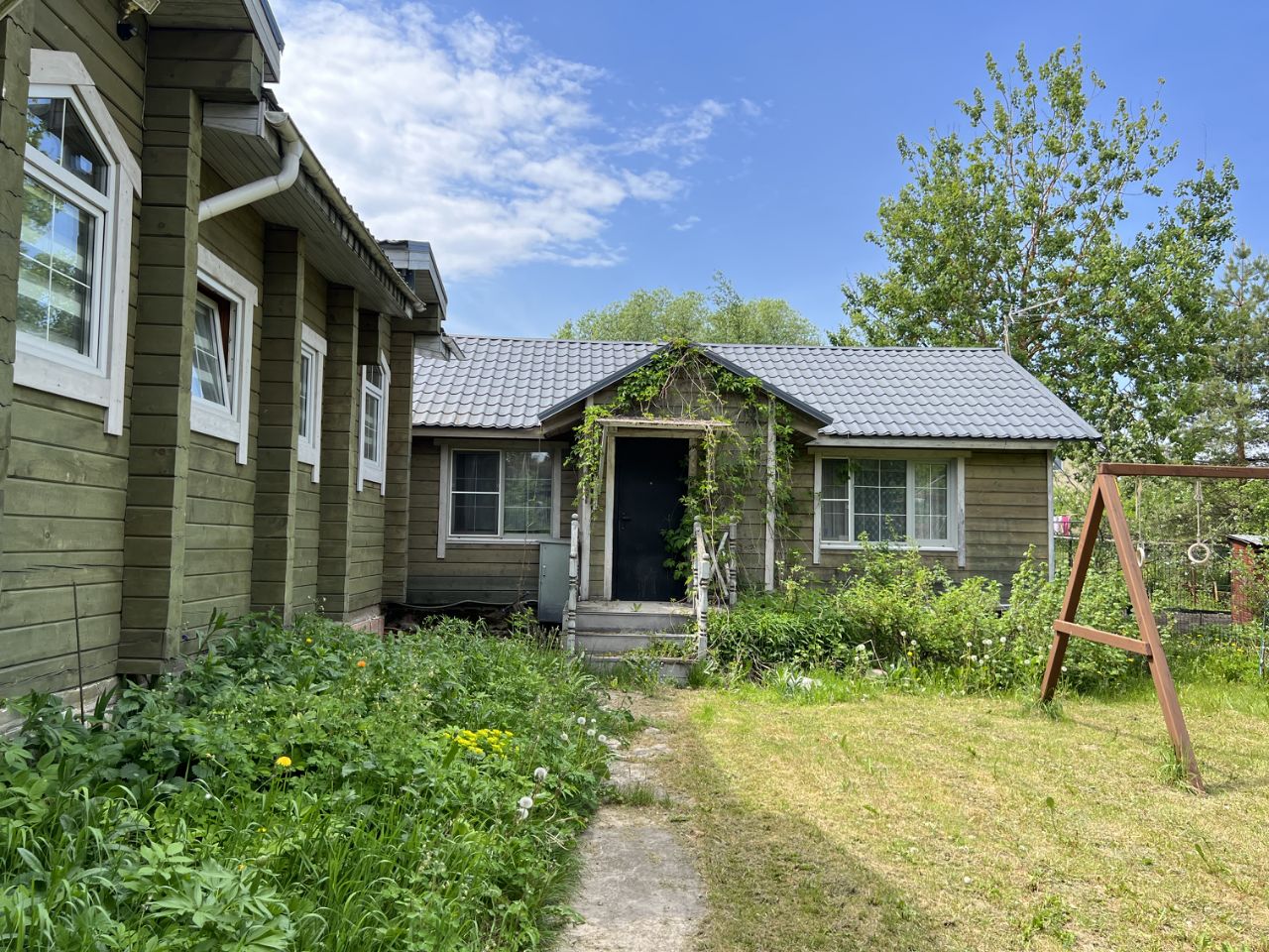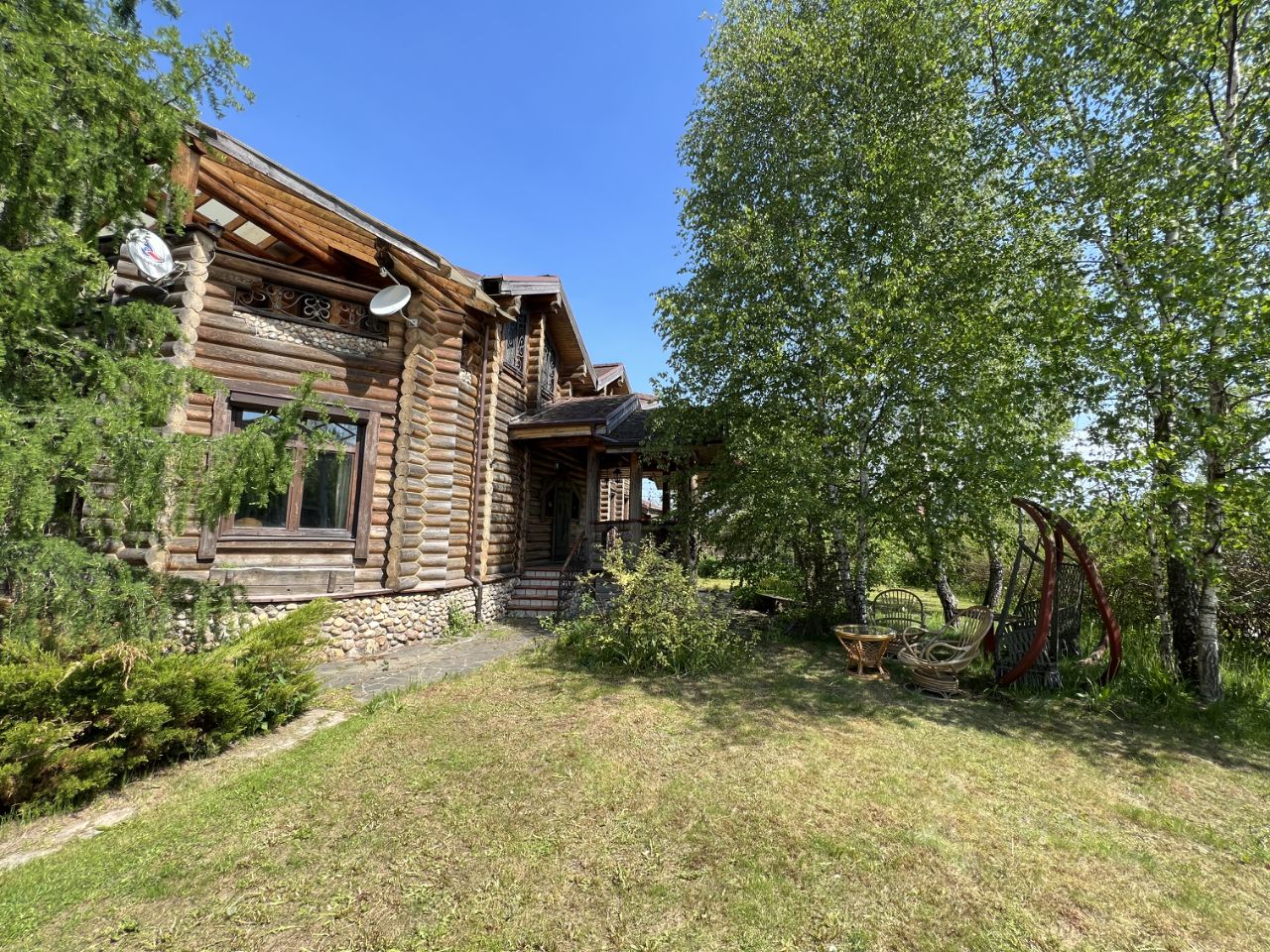 Также на участке посажены декоративные, хвойные и плодовые деревья, газон, дорожки, много цветов, есть отдельная зона для барбекю, детская площадка. При въезде установлены электрические въездные ворота, въезд вымощен брусчаткой. Круглогодичный отдельный подъезд до ворот, заезд по новой асфальтированной дороге, через шлагбаум к гольф-клубу Raevo Golf & Country Club. Есть выход в лес, к озерам и пруду. Выезд на Минское, Можайское и Новорижское шоссе.