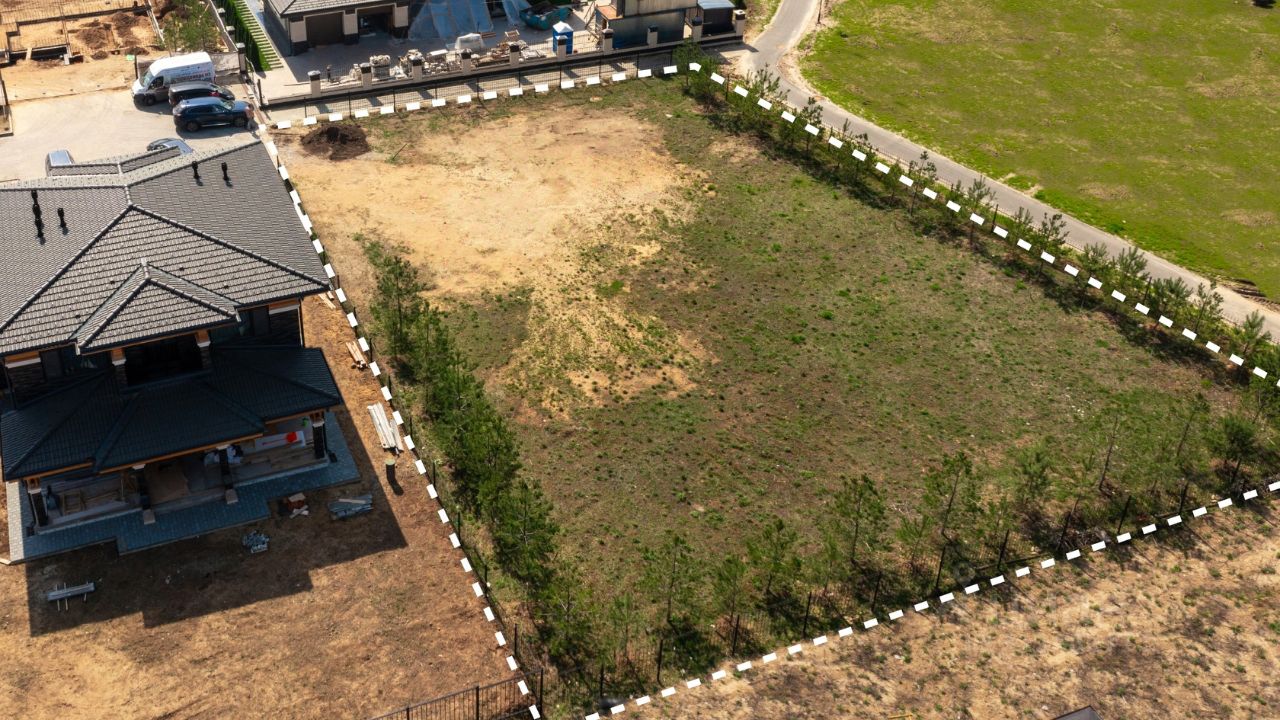 По периметру огорожен забором, который отвечает единой концепции благоустройства. Участок расположен в застроенной части посёлка, соседи построились, а в шаговой доступности — прибрежная инфраструктура: прогулочные набережные, пляжная зона, спортивные и детские площадки.