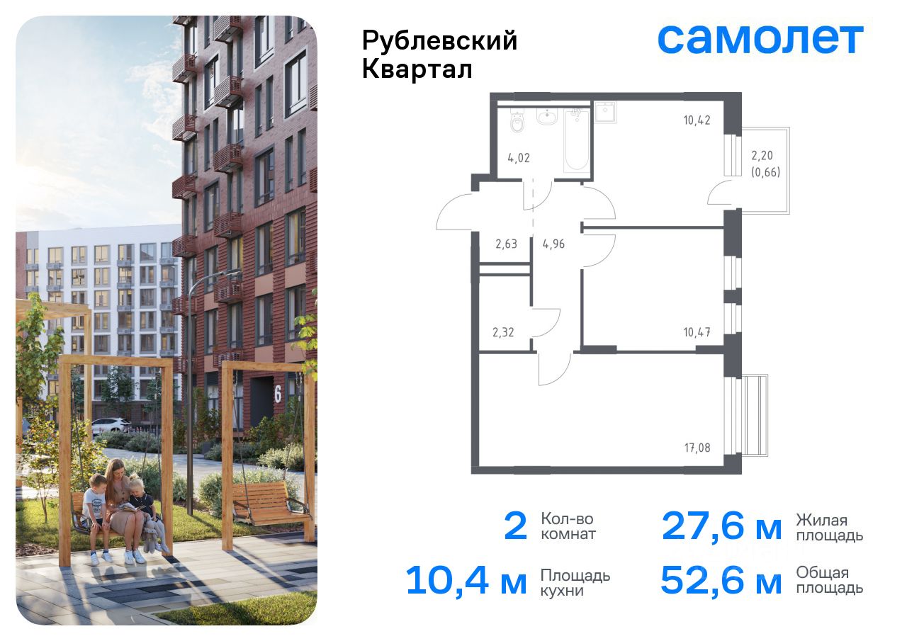 Предлагается 2-комнатная квартира комфорт-класса 52,56 кв.м в корпусе 59 на 3 этаже, в ЖК ''Рублевский Квартал'' Квартира с чистовой отделкой. Доступность дополнительных опций уточняйте у застройщика.