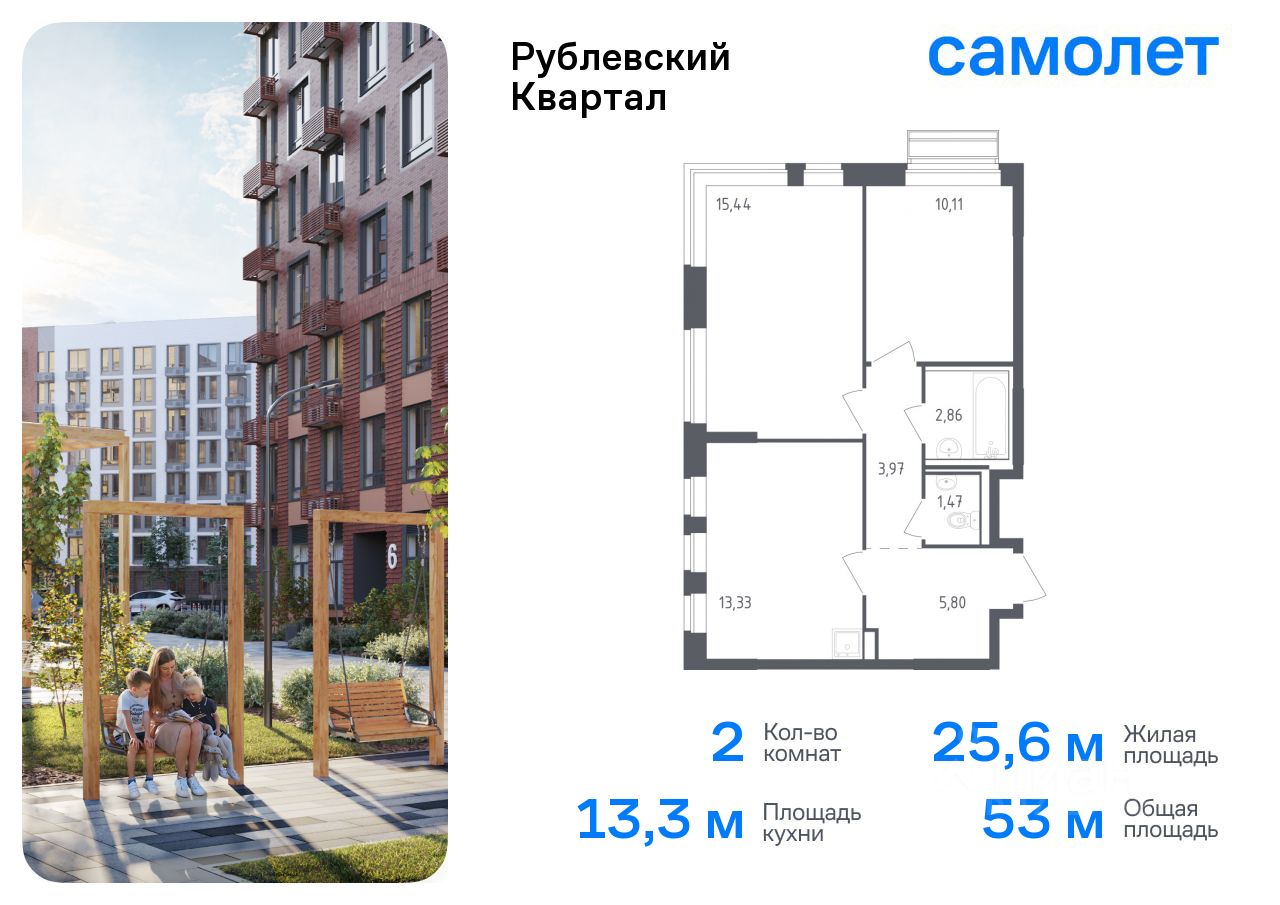 Предлагается 2-комнатная квартира комфорт-класса 52,98 кв.м в корпусе 55 на 8 этаже, в ЖК ''Рублевский Квартал'' Квартира с чистовой отделкой. Доступность дополнительных опций уточняйте у застройщика.