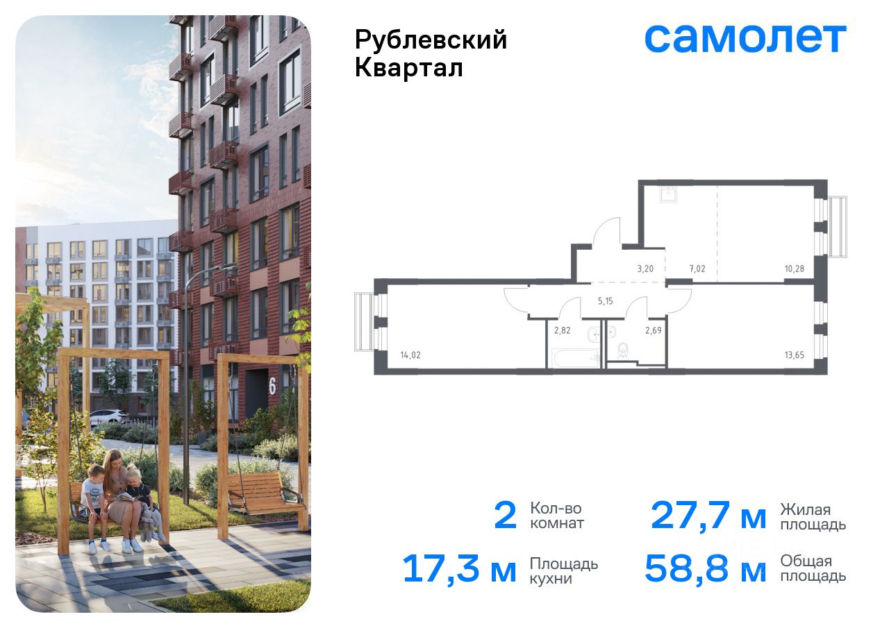 Предлагается 2-комнатная квартира комфорт-класса 58,83 кв.м в корпусе 59 на 5 этаже, в ЖК ''Рублевский Квартал'' Квартира с чистовой отделкой. Доступность дополнительных опций уточняйте у застройщика.