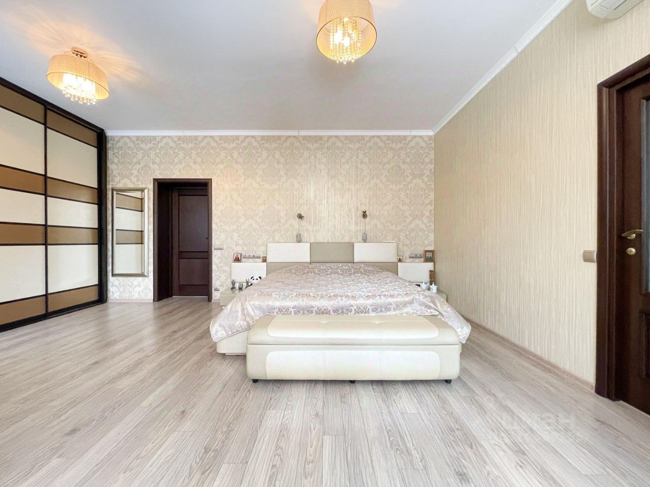На втором этаже расположены мастер спальня с санузлом, детская, гостевая спальня, гардеробная. Установлена охранная система, видео наблюдение. В санузлах теплые полы.