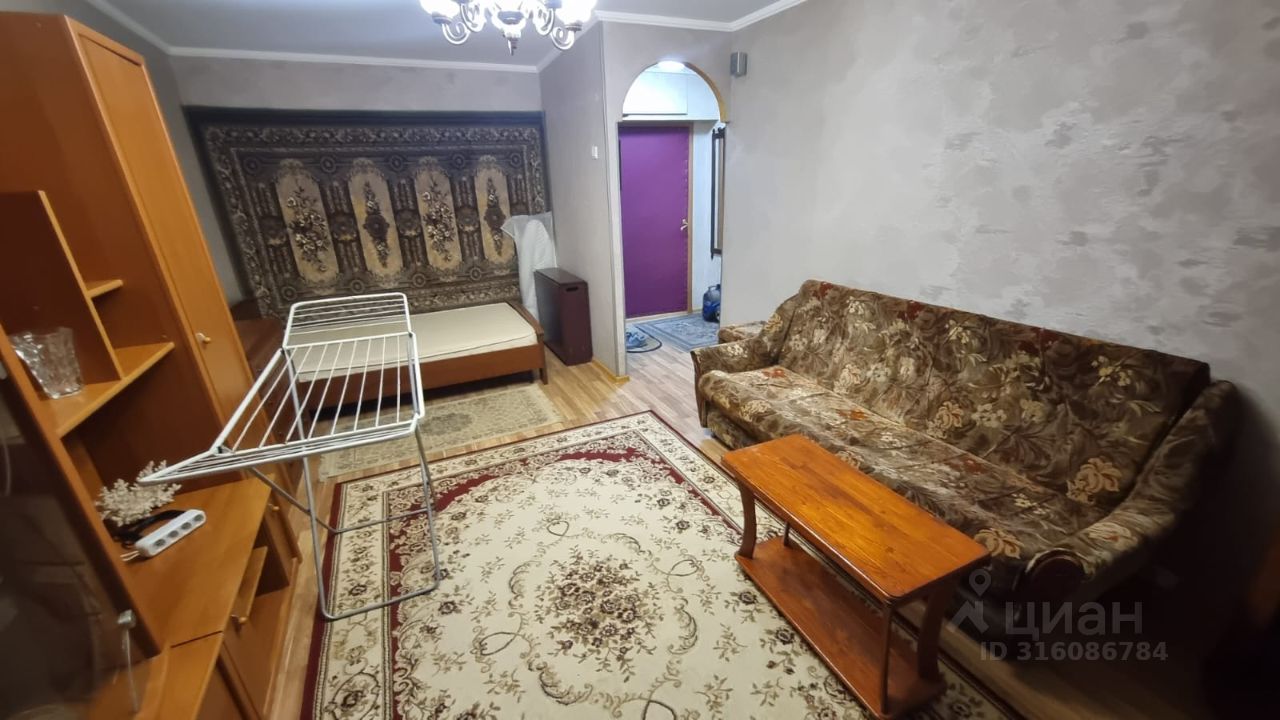 Просторная комната 21 кв.м, кухня 9,6 кв.м. Большая застекленная лоджия 6 кв. м вдоль комнаты и кухни, по всей длине фасада квартиры. Стеклопакеты. Кухонный гарнитур, холодильник, стиральная машина, телевизор, кровать, диван, домофон, интернет.