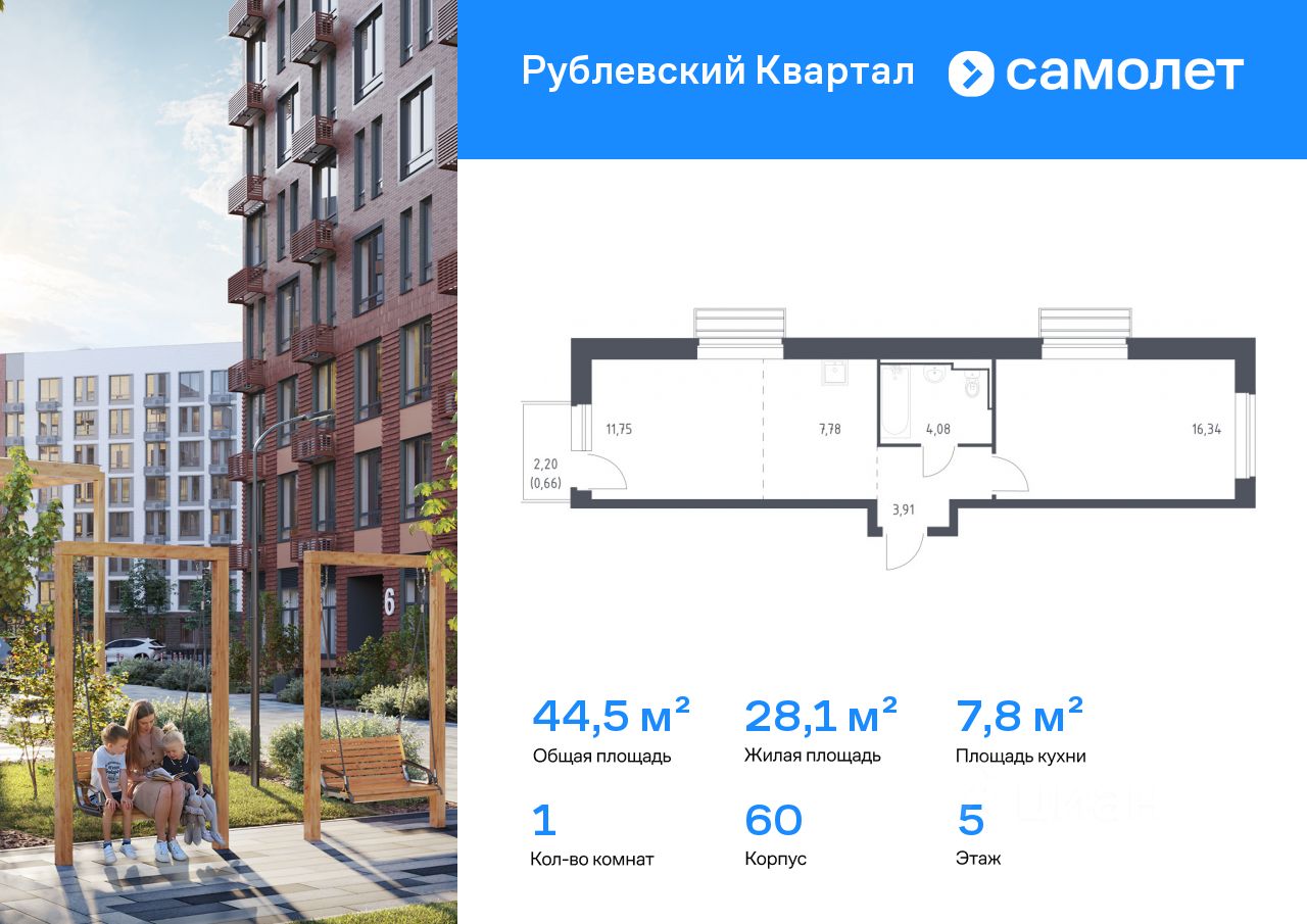 Строим кварталы для жизни с заботой о будущем. Предлагается 1-комнатная квартира комфорт-класса 44,52 кв.м в корпусе 60 на 5 этаже, в ЖК ''Рублевский Квартал'' Квартира с чистовой отделкой. Доступность дополнительных опций уточняйте у застройщика.