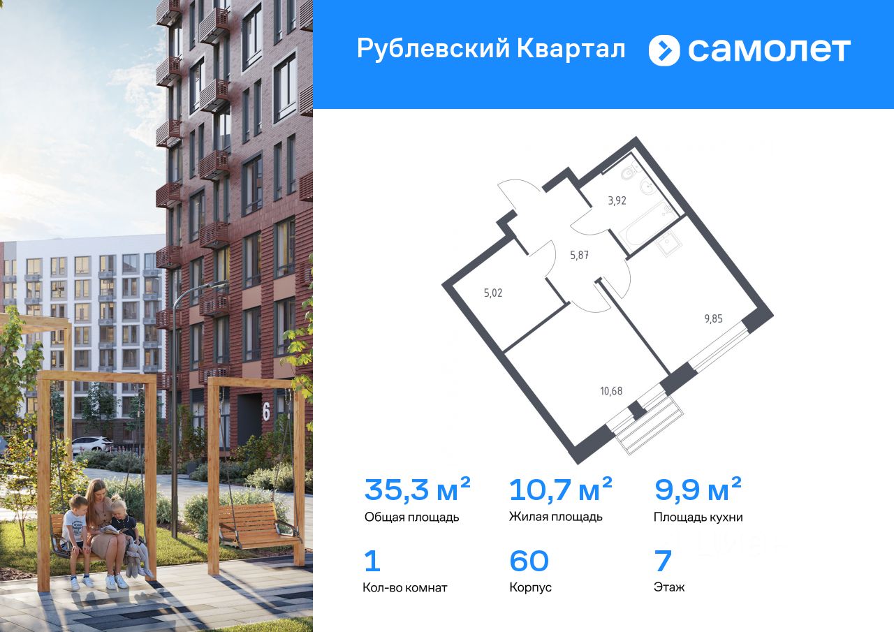 Строим кварталы для жизни с заботой о будущем. Предлагается 1-комнатная квартира комфорт-класса 35,34 кв.м в корпусе 60 на 7 этаже, в ЖК ''Рублевский Квартал'' Квартира с чистовой отделкой. Доступность дополнительных опций уточняйте у застройщика.