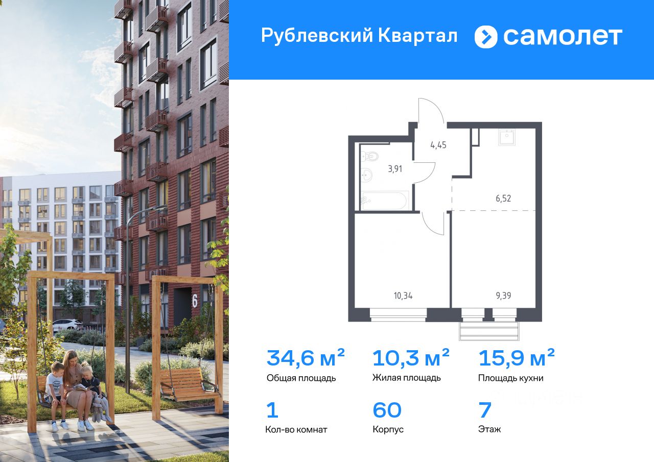 Предлагается 1-комнатная квартира комфорт-класса 34,61 кв.м в корпусе 60 на 7 этаже, в ЖК ''Рублевский Квартал'' Квартира с чистовой отделкой. Доступность дополнительных опций уточняйте у застройщика.