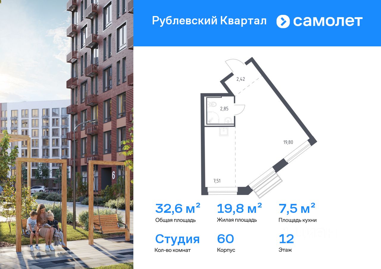 Строим кварталы для жизни с заботой о будущем. Предлагается квартира студия комфорт-класса 32,58 кв.м в корпусе 60 на 12 этаже, в ЖК ''Рублевский Квартал'' Квартира с чистовой отделкой. Доступность дополнительных опций уточняйте у застройщика.