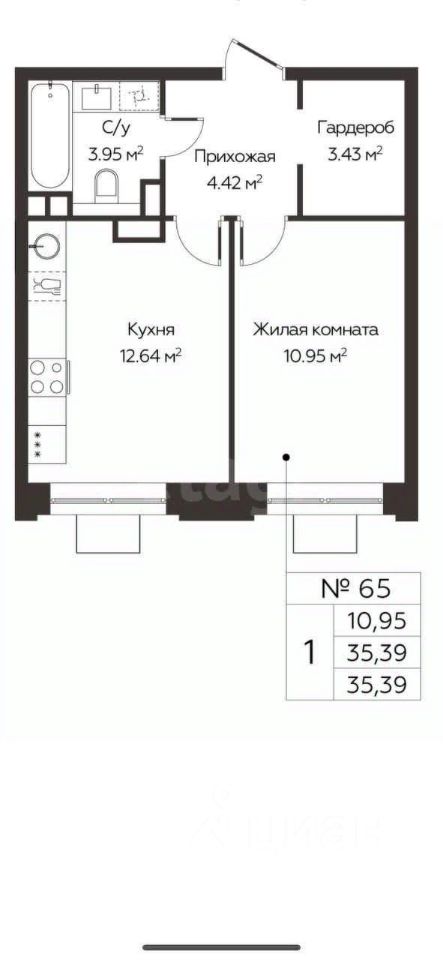 Общая площадь35,39 м2