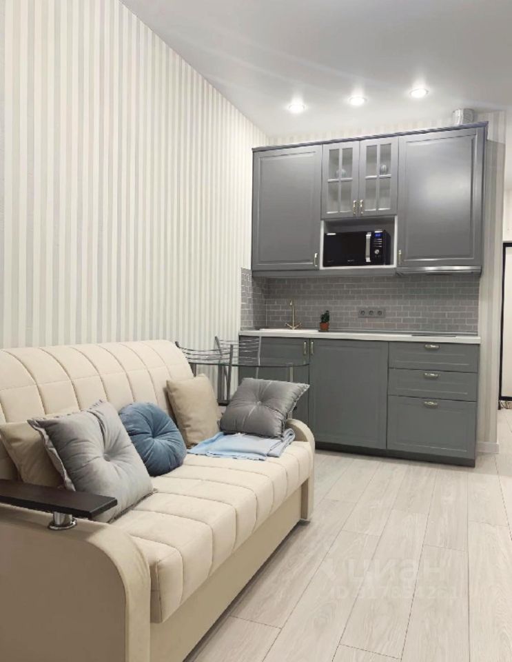 Полностью обустроена мебелью и бытовой техникой: стиральная машина, микроволновка, холодильник, кондиционер - всё остается покупателю! Комната увеличена за счет балкона, в квартире теплый пол, ламинат, плитка. Прекрасный вид из окна, чистый воздух и благоустроенный двор. В доме магазин Лента , кофейня. Во дворе большая парковочная площадка.