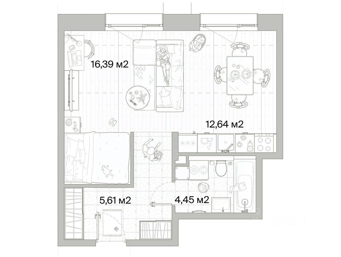 Общая площадь39,09 м2