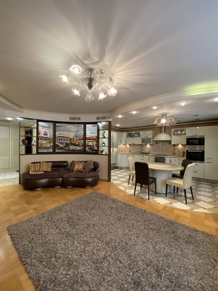 Предлагается в аренду просторная трёхкомнатная квартира в Одинцово, на улице Маршала Жукова, 11А. Общая площадь квартиры составляет 106 кв. м. В квартире сделан дизайнерский ремонт, установлена вся необходимая мебель на кухне и в комнатах. Просторная кухня оборудована современной техникой: холодильником, посудомоечной машиной и телевизором. В ванной комнате установлены джакузи и душевая кабина, что делает её удобной для всей семьи. В квартире также есть два санузла — один совмещённый и один отдельный.