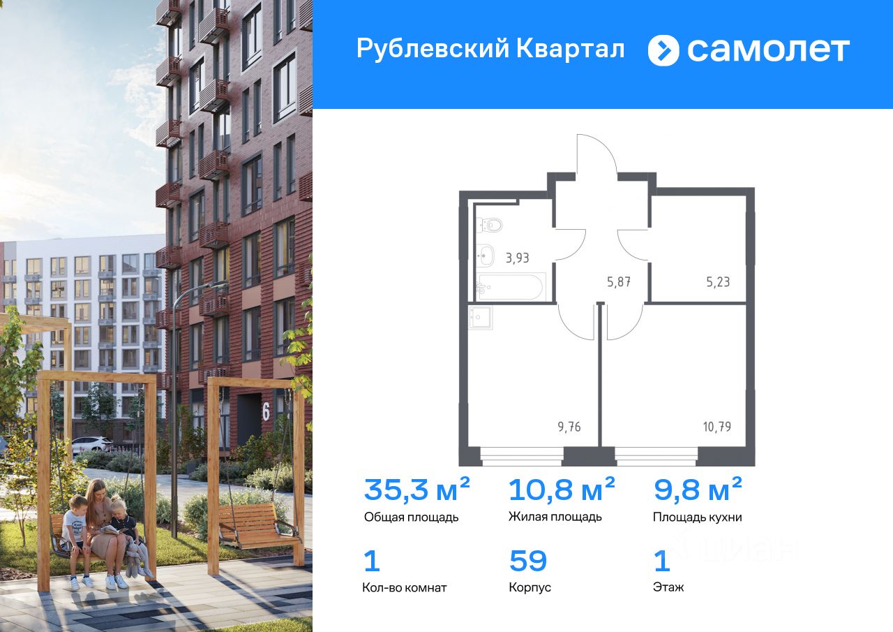 Предлагается 1-комнатная квартира комфорт-класса 35,3 кв.м в корпусе 59 на 1 этаже, в ЖК ''Рублевский Квартал'' Квартира с чистовой отделкой. Доступность дополнительных опций уточняйте у застройщика.
