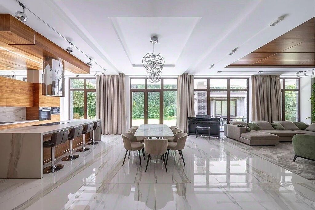 Панорамные окна наполняют пространство естественным светом и создают ощущение единства с окружающей природой.