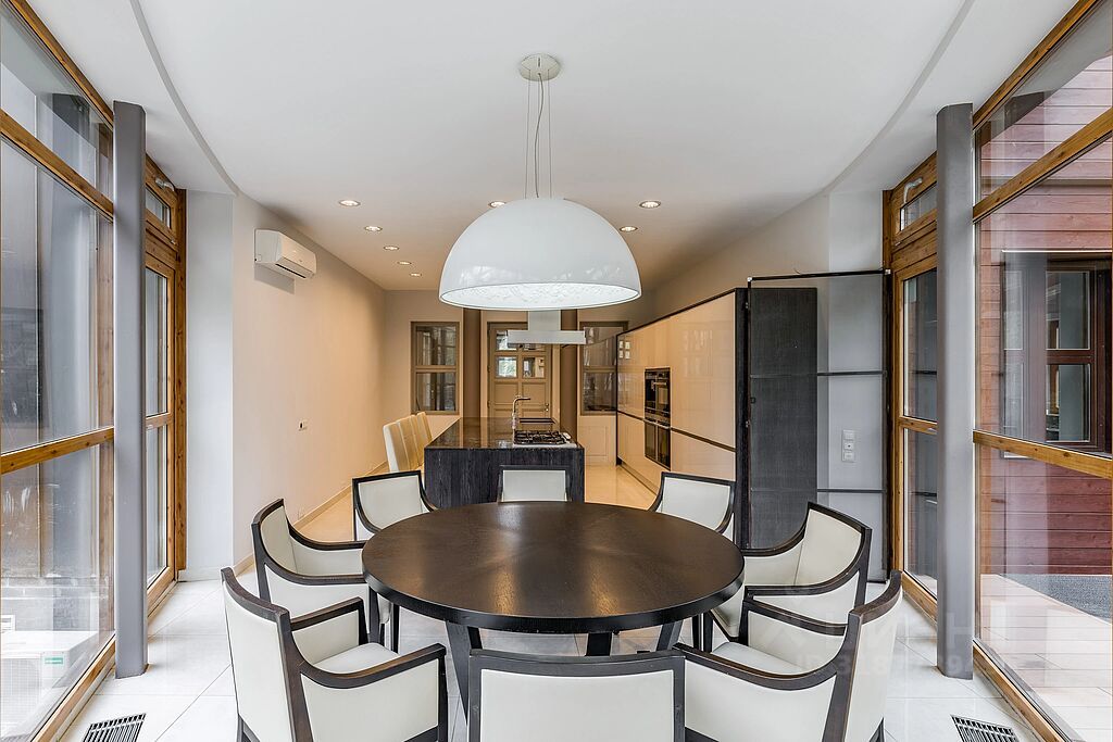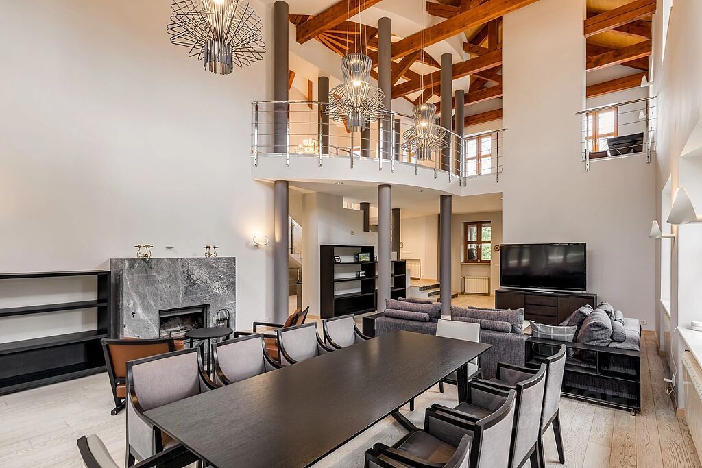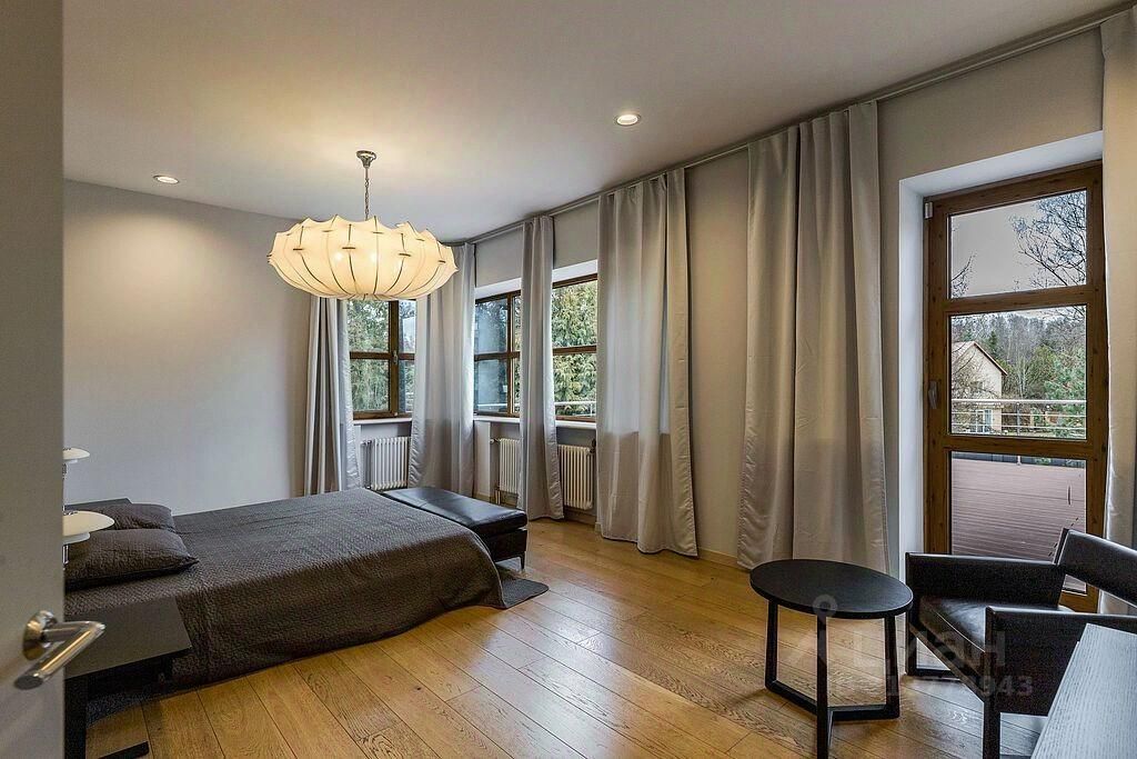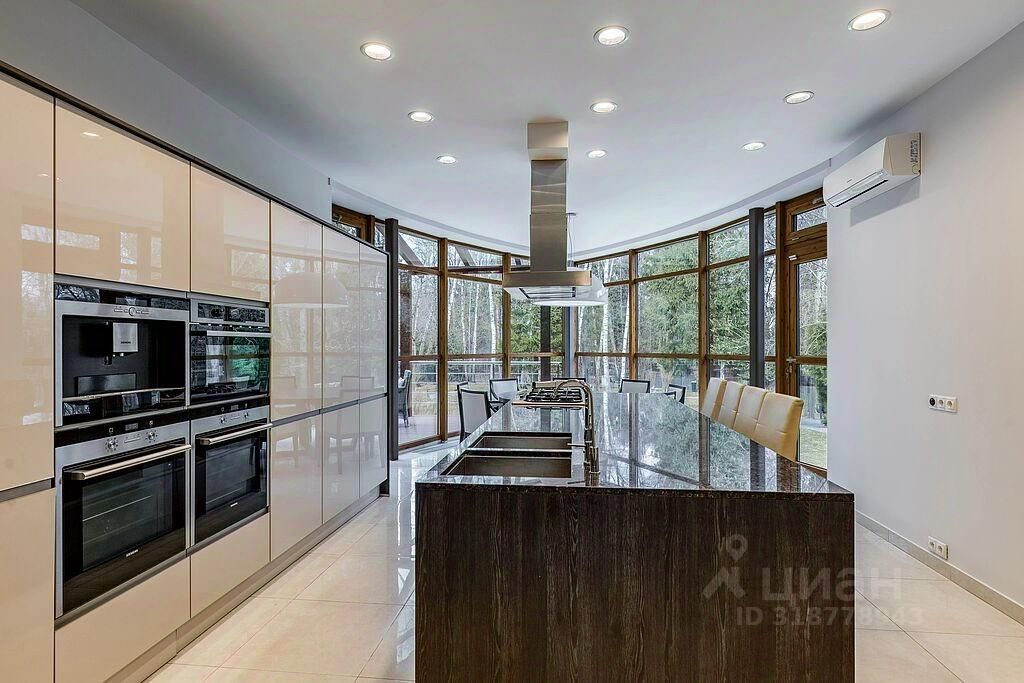 Предлагается на аренду современный и изысканный дом площадью 650 кв.м., расположенный в охраняемом коттеджном поселке ''Лайково-2''. Этот уютный поселок состоит из 12 домов и окружен живописным лесом, что создает атмосферу спокойствия и уединения.