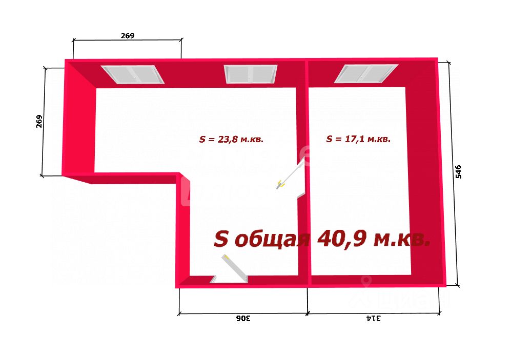 Общая площадь40,9 м2