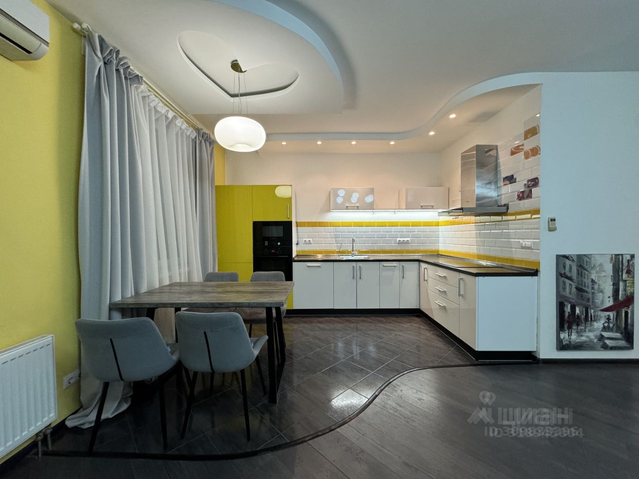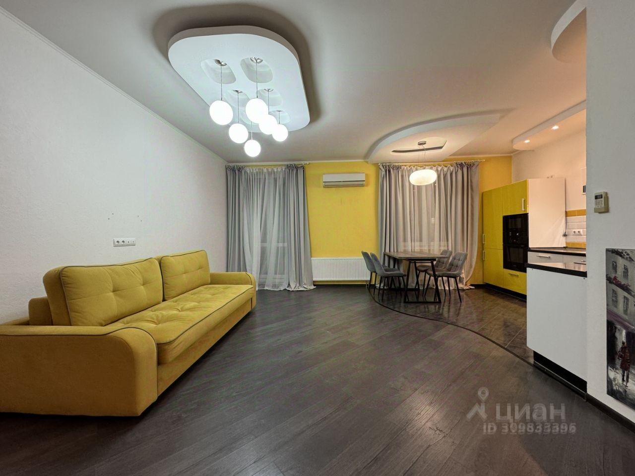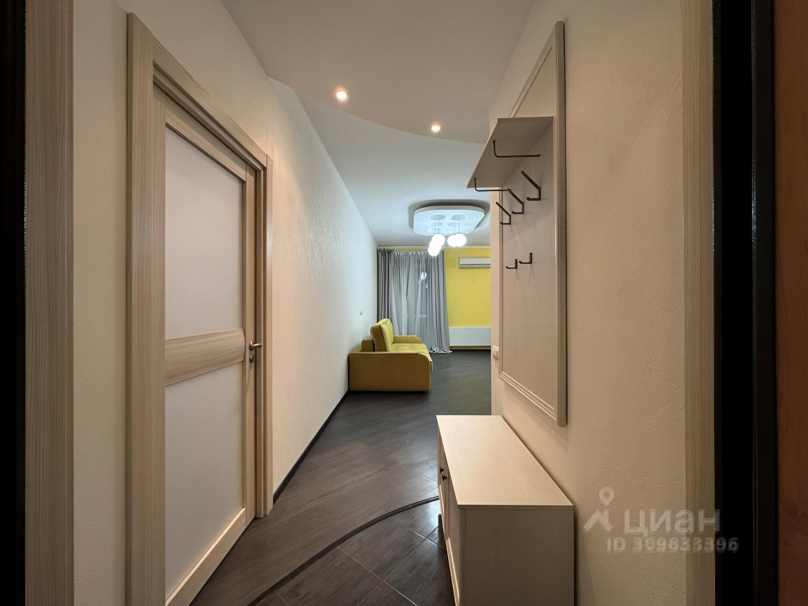 Планировка предусматривает зону кухня-гостиная с выходом на застекленную лоджию, спальню, санузел с ванной, прихожую с гардеробной. В гостиной установлен кондиционер.