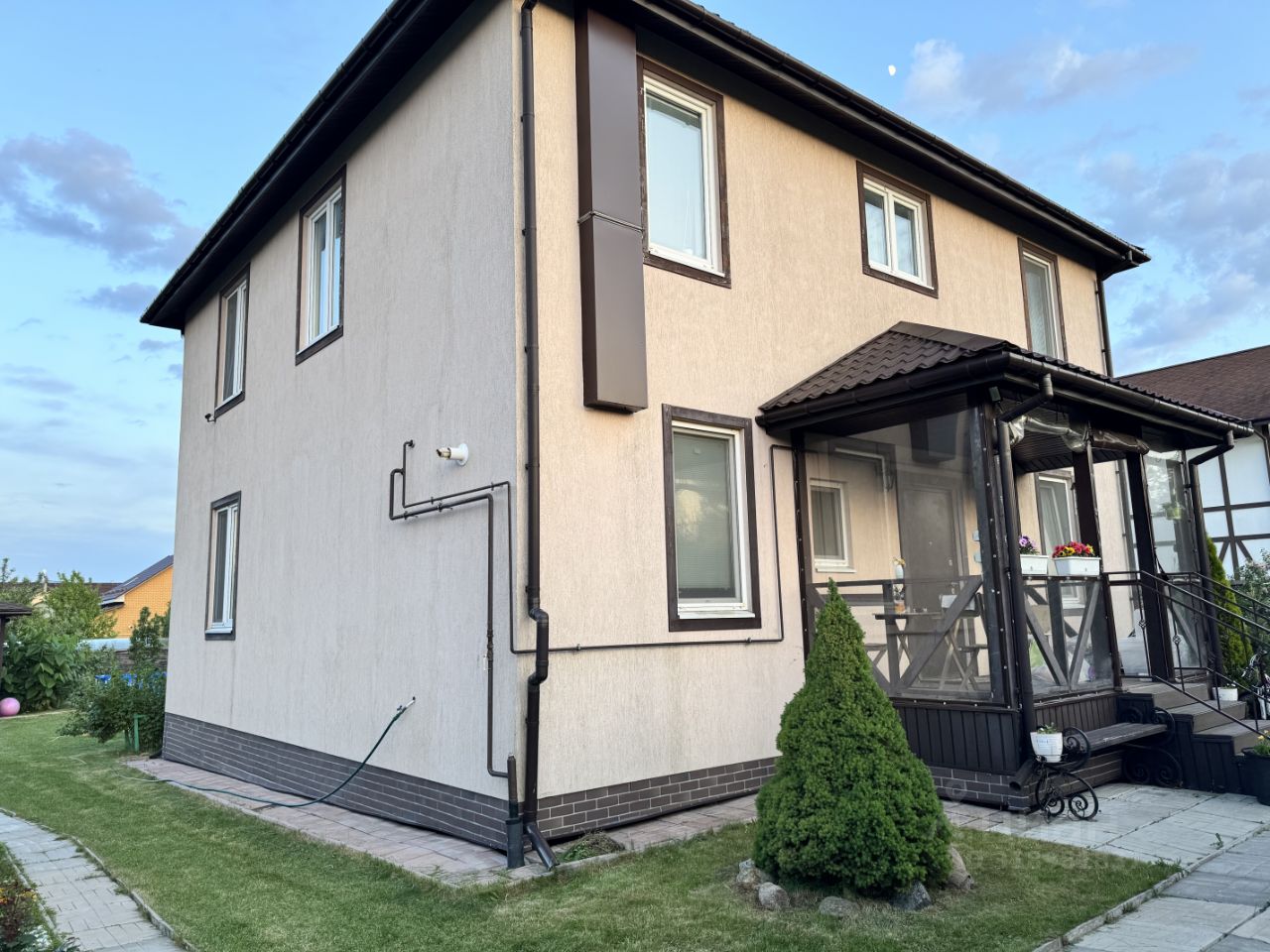 Вашему вниманию представляется дачный участок с домом 200 кв метров, расположенный в коттеджном поселке Капитан Лэнд. Дом полностью готов к круглогодичному проживанию. В доме выполнен современный ремонт, дом полностью меблированный. Дом построен в 2014 году по Канадской технологии (SIP-панели). Отделка дома декоративная штукатурка Короед. Крыша металочерепица, Окна двухкамерные стеклопакеты. Планировка: * Первый этаж: прихожая 3 кв. м., коридор 13 кв. метров, бойлерная 6,3 кв. метров, гостиная 35 кв. метров, кухня 15,5 кв. метров, спальня 15, 5 кв. метров, с.у. 4,5 кв.м. * Второй этаж: 4 cпальни по 15,5 кв. метров, холл 12 кв. метров, санузел 10 кв. метров, и маленькая комната 5 кв. метров (можно использовать под гардеробную). Коммуникации: Отопление-газовый котел, магистральный газ в доме (батареи на первом и втором этажах), электроснабжение 3-х фазное 15 кВт, водоснабжение центральное (+ есть кран снаружи дома для полива), установлена система водоочистки и фильтрации, аэрации, солевое смягчение воды, канализация автономный септик, дренажный колодец, проведен интернет, установлен кондиционер, спутниковое ТВ. Участок прямой, сухой, высокий, правильной формы, забор по всему периметру. На участке растут яблони, груши, смородина, малина, ели, туи и много других декоративных растений. На участке стоит теплица длиной 3 метра. Дом продается продается полностью мебелью и со всей бытовой техникой заезжай и живи, участок также полностью облагорожен и не требует никаких вложений. В поселке: детские, спортивные площадки, мини-маркет, пруды, озеро с оборудованным пляжем, футбольное поле с освещением и т.д. Комплекс коттеджных поселков Капитан Клаб имеет развитую инфраструктуру: магазины, рестораны, аптеку, детский сад/клуб, начальную школу, теннисные и волейбольные корты, мини зоопарк, собственную конюшню, бассейн, фитнес центр, пиццерия-пекарня, оборудованные прогулочные зоны и т.д. Симферопольское шоссе 100 км. от МКАД.