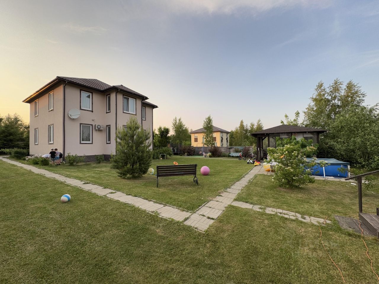 Вашему вниманию представляется дачный участок с домом 200 кв метров, расположенный в коттеджном поселке Капитан Лэнд. Дом полностью готов к круглогодичному проживанию. В доме выполнен современный ремонт, дом полностью меблированный. Дом построен в 2014 году по Канадской технологии (SIP-панели). Отделка дома декоративная штукатурка Короед. Крыша металочерепица, Окна двухкамерные стеклопакеты. Планировка: * Первый этаж: прихожая 3 кв. м., коридор 13 кв. метров, бойлерная 6,3 кв. метров, гостиная 35 кв. метров, кухня 15,5 кв. метров, спальня 15, 5 кв. метров, с.у. 4,5 кв.м. * Второй этаж: 4 cпальни по 15,5 кв. метров, холл 12 кв. метров, санузел 10 кв. метров, и маленькая комната 5 кв. метров (можно использовать под гардеробную).