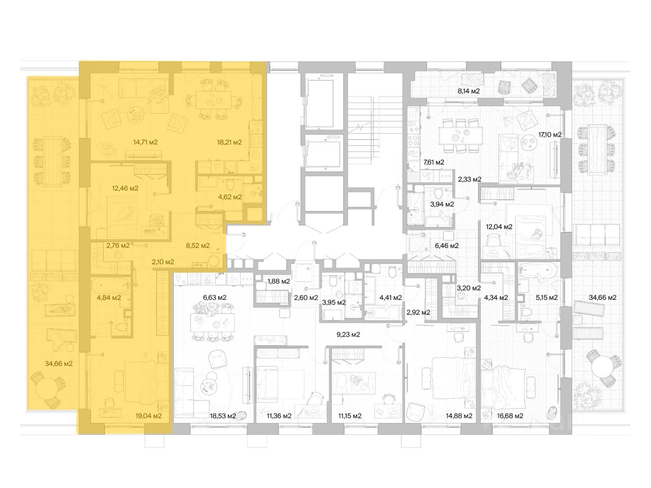 В продаже квартира площадью 97.66 кв. м без отделки на 2 этаже 6 этажного дома. Квартира находится в премиальном жилом комплексе ''МЫС'' (Застройщик - MR Group).