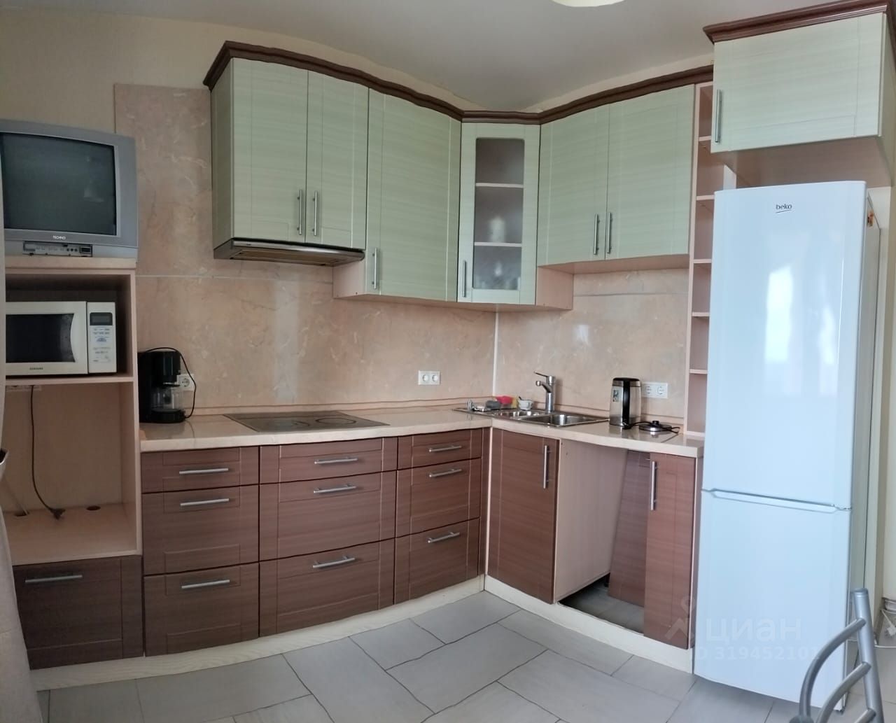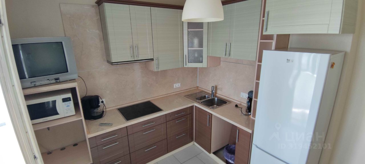 Квартира с евроремонтом, полностью готова к проживанию. Есть необходимая мебель и бытовая техника, шкафы для хранения вещей. Кухня просторная, площадью 10 кв. м, оборудована техникой: холодильником, варочной панелью, вытяжкой, стиральная машина.