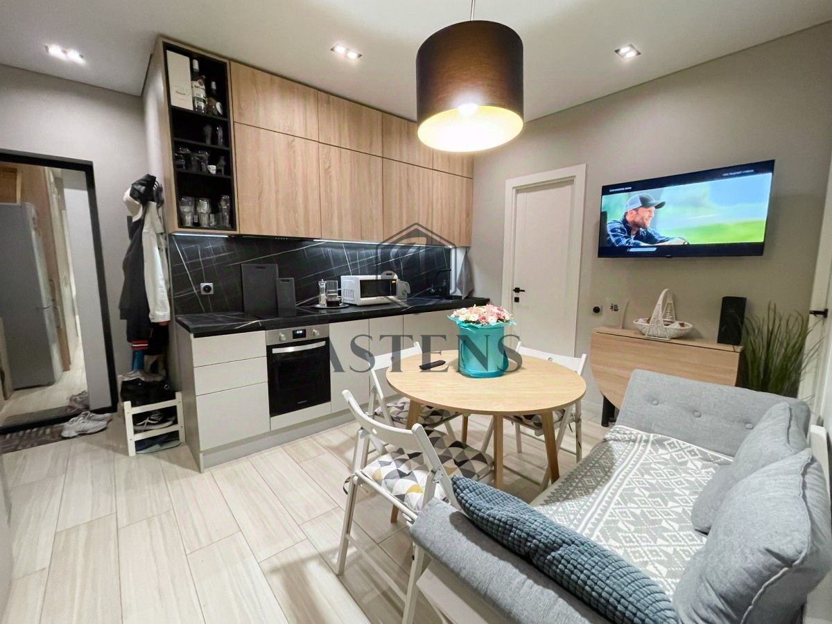 Квартира полностью укомплектована мебелью и техникой для комфортного проживания. На кухне есть вся необходимая техника, в т.ч. посудомойка. Есть кондиционер. Окна квартиры выходят во двор. Кругом тишина и порядок.