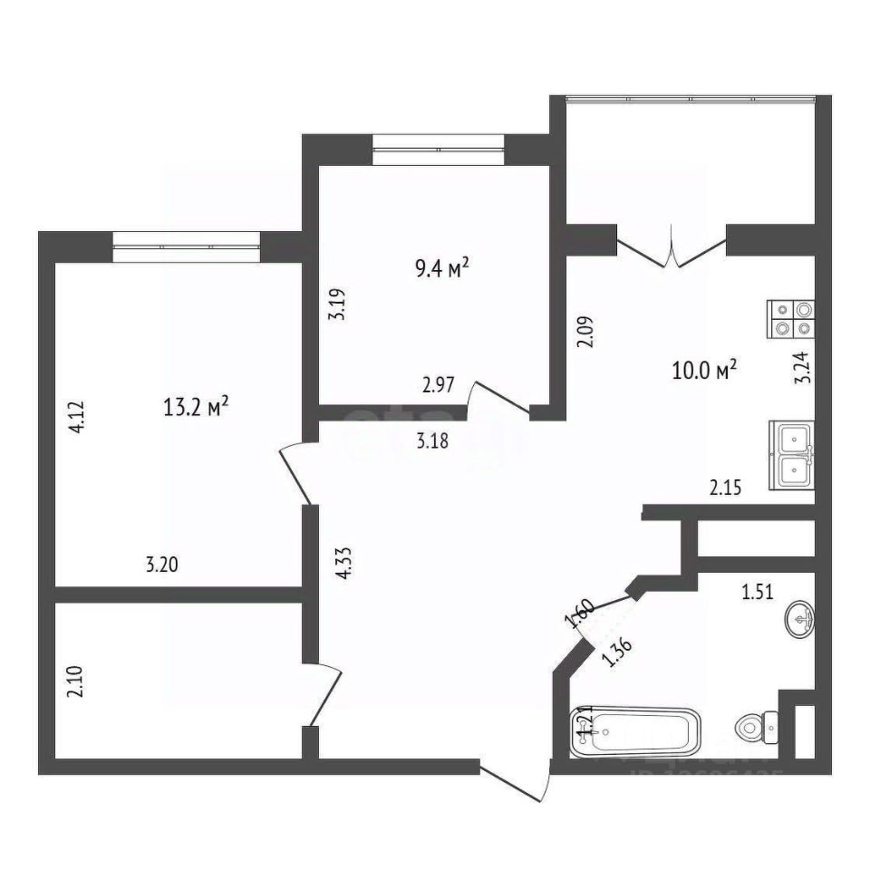 2 изолированные спальни + кухня-гостиная, в гостиной хороший диван, который раскладывается в полноценное 2-спальное место.