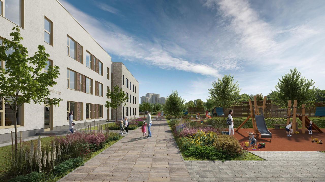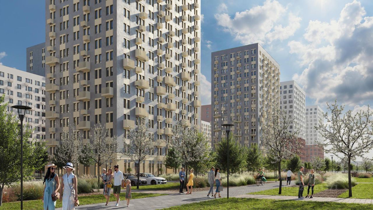 Уединенный жилой комплекс, где хочется остаться. До МКАДа всего 10 минут на авто, а прямо рядом с домами есть лес — идеально для прогулок, занятий спортом и медитаций. Фасады 1117-этажных корпусов дополняют яркие вставки — каждый дом особенный. На территории проекта появятся ФОК и поликлиника, детские сады и школы.