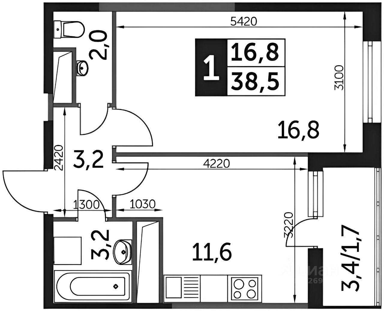 продам 1-к, Сколковская, 9а10 500 000 ₽