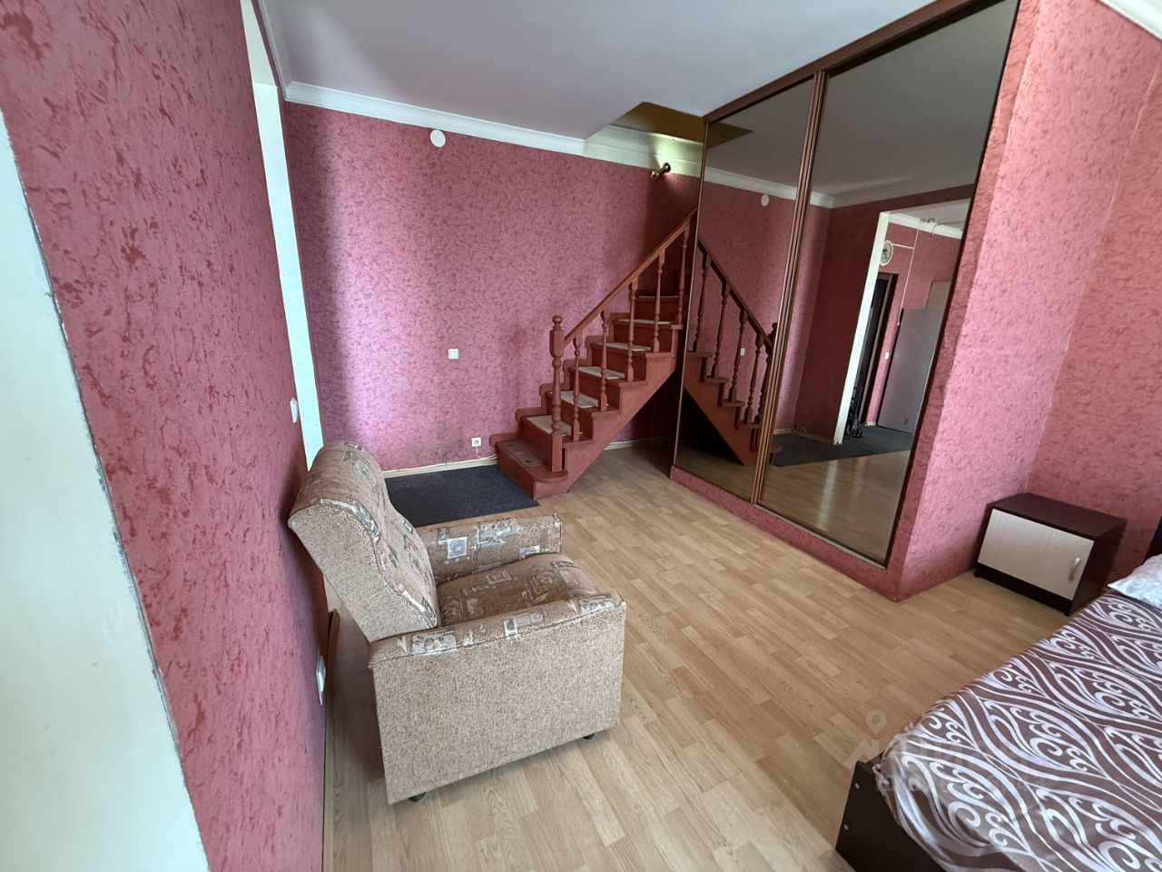 Характеристики квартиры: - Площадь: 50 м² - Планировка: кухня-гостиная, спальня - Ремонт: косметический - Санузел: совмещенный, расположен на 2-м этаже
