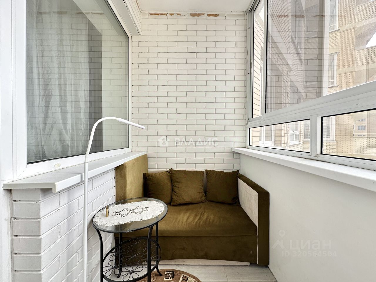 Большая лоджия с комфортным местом для отдыха.