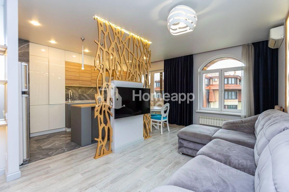 Согласно планировке в квартире: кухня-гостиная 32м, 2 спальни, гардеробная, санузел, просторный холл, 2 квадратные 5-метровые лоджии со светом и розетками. Европейская кухня с островом для готовки, укомплектованная всей необходимой современной техникой, установлен кондиционер Mitsubishi. В гостиной выход на видовую лоджию с шикарным видом, установлены шумоизоляционные двери. В спальных комнатах вместительные гардеробные шкафы, стильные дизайнерские решения и аксессуары. В одной из спален выход на тёплую лоджию. В санузле душ и джакузи с гидромассажем и музыкой, тёплый пол. Оснащённая гардеробная комната. Для безопасности - видеодомофон и надёжная металлическая входная дверь.