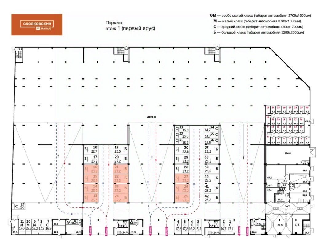 Машиноместо номер 285 общей площадью 14.7 кв. м на 1-м этаже в ЖК ''Сколковский''.