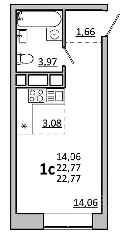 Общая площадь22,77 м2