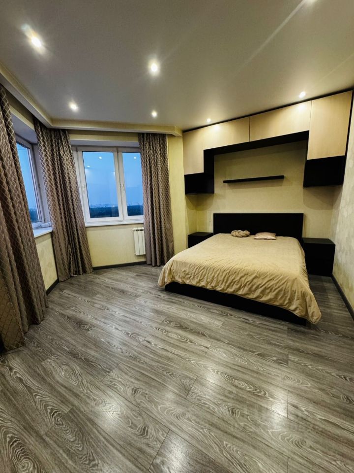 В квартире сделан качественный евроремонт. Просторные и светлые комнаты оформлены в современном стиле. Есть одна лоджия, где можно наслаждаться свежим воздухом и красивыми видами на окрестности. Кухня оборудована всей необходимой техникой, поэтому готовка будет в удовольствие. Санузел раздельный, что очень удобно для большой семьи.