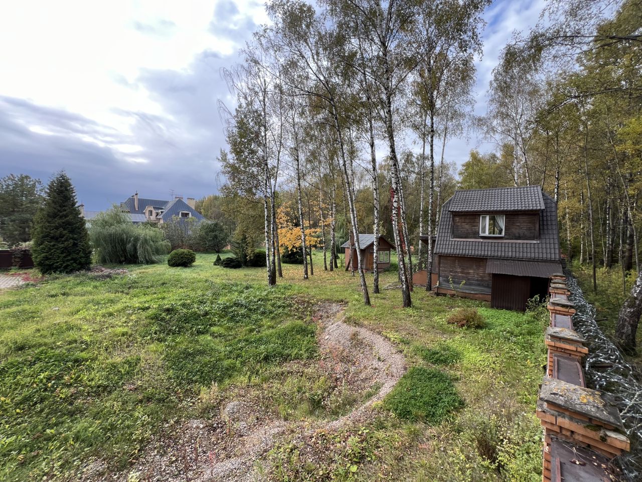 - Весь участок ИЖС огорожен капитальным кирпичным забором.