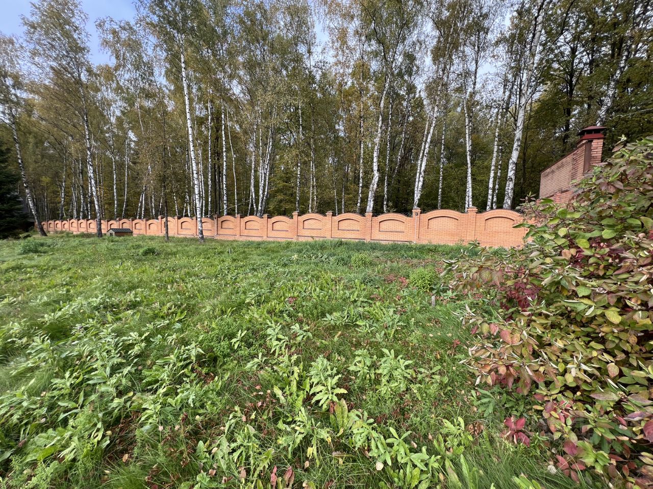 - Весь участок ИЖС огорожен капитальным кирпичным забором.