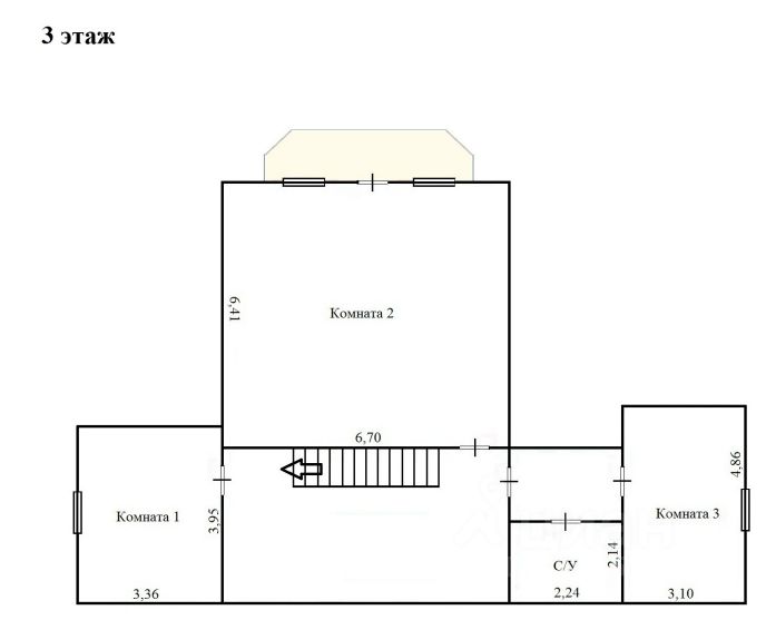2 этаж: Санузел- 2 шт., Гостиная-кухня, 2 спальни,