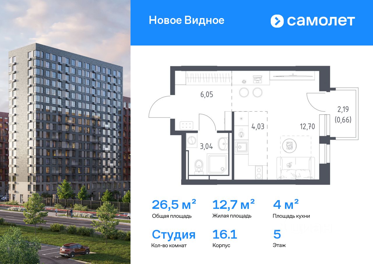 Строим кварталы для жизни с заботой о будущем. Предлагается квартира студия комфорт-класса 26,48 кв.м в корпусе 16.1 на 5 этаже, в ЖК ''Новое Видное'' Квартира с чистовой отделкой. Доступность дополнительных опций уточняйте у застройщика.