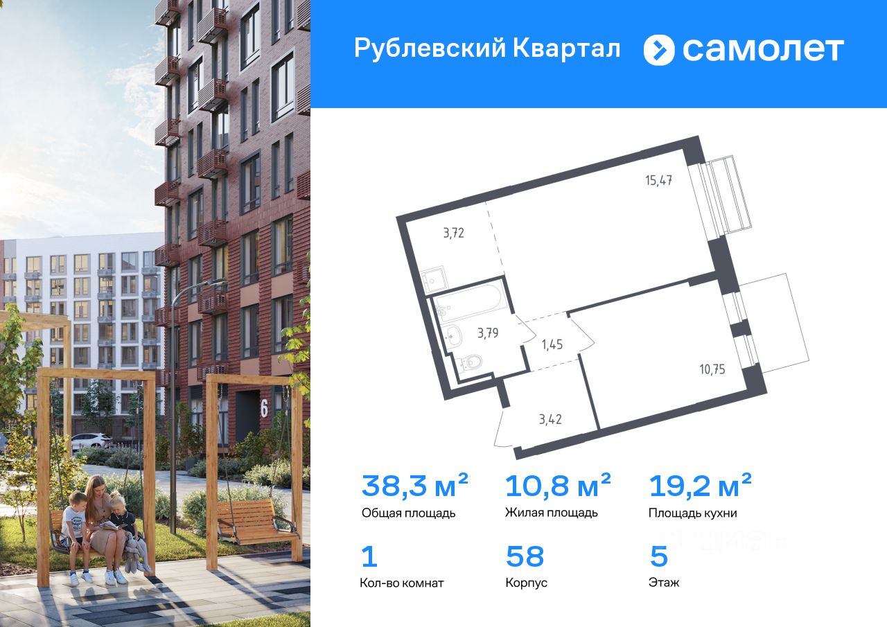 Строим кварталы для жизни с заботой о будущем. Предлагается 1-комнатная квартира комфорт-класса 38,3 кв.м в корпусе 58 на 5 этаже, в ЖК ''Рублевский Квартал'' Квартира с чистовой отделкой. Доступность дополнительных опций уточняйте у застройщика.