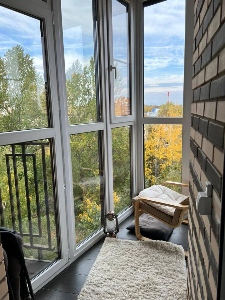 Квартира общей площадью 64.5м2 (без балкона), 2 изолированные комнаты (спальня и детская/кабинет), кухня гостиная площадью около 30м2. Дополнительно произведён полный ремонт балкона и сейчас он полностью панорамный. С балкона открывается красивый вид на закат, что видно на фото. Окна выходят на лесной городок. Ни дорогу ни жд не слышно даже с открытыми окнами.