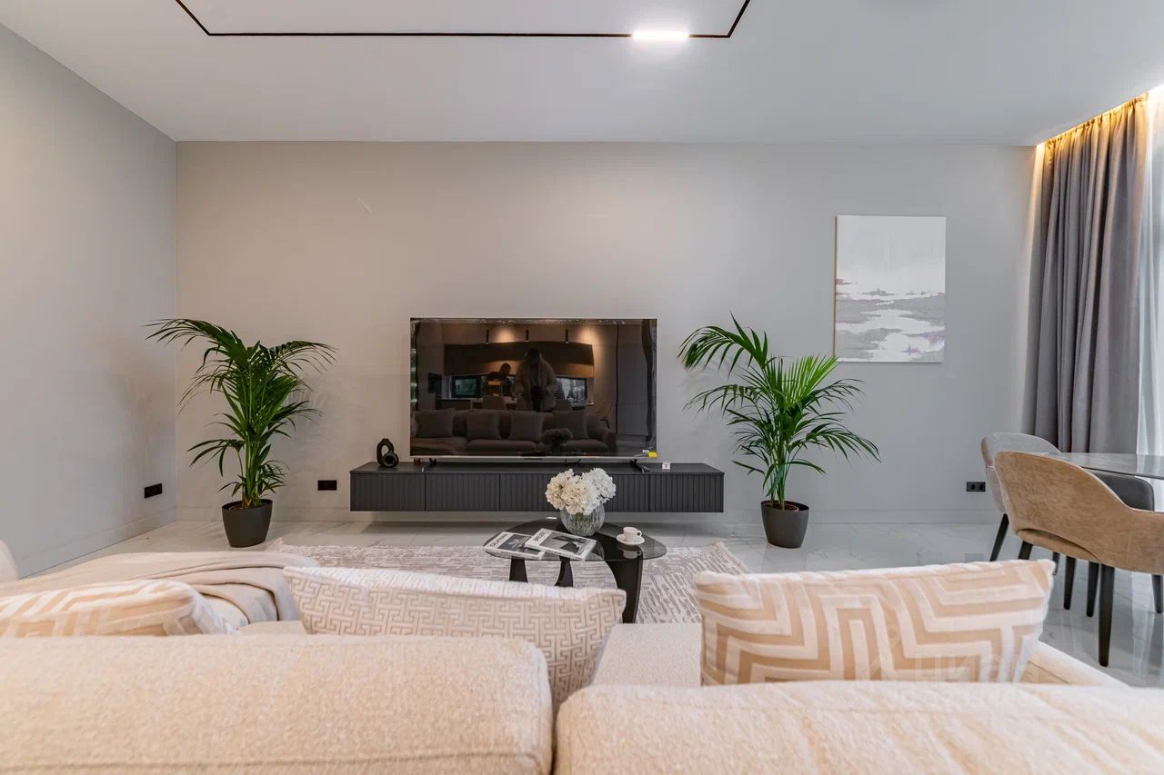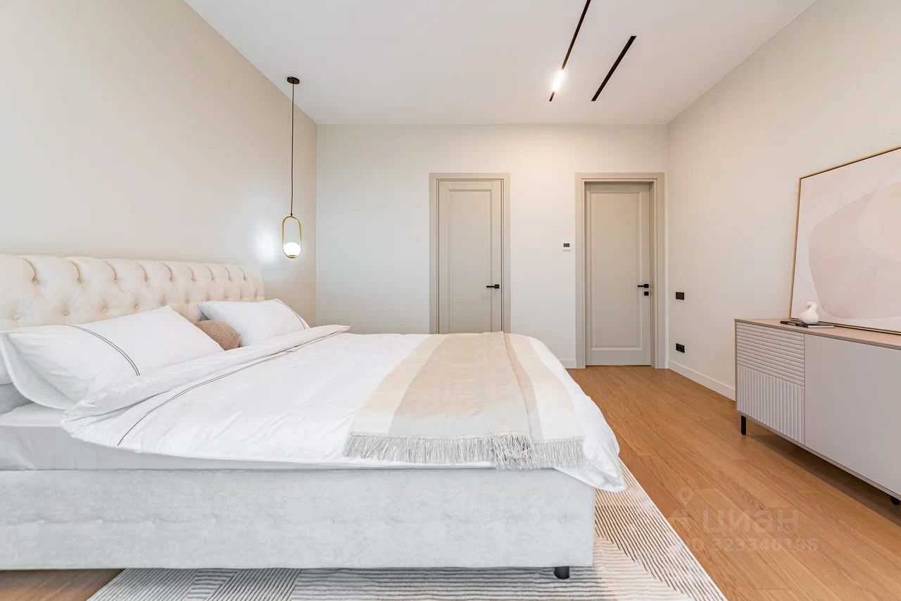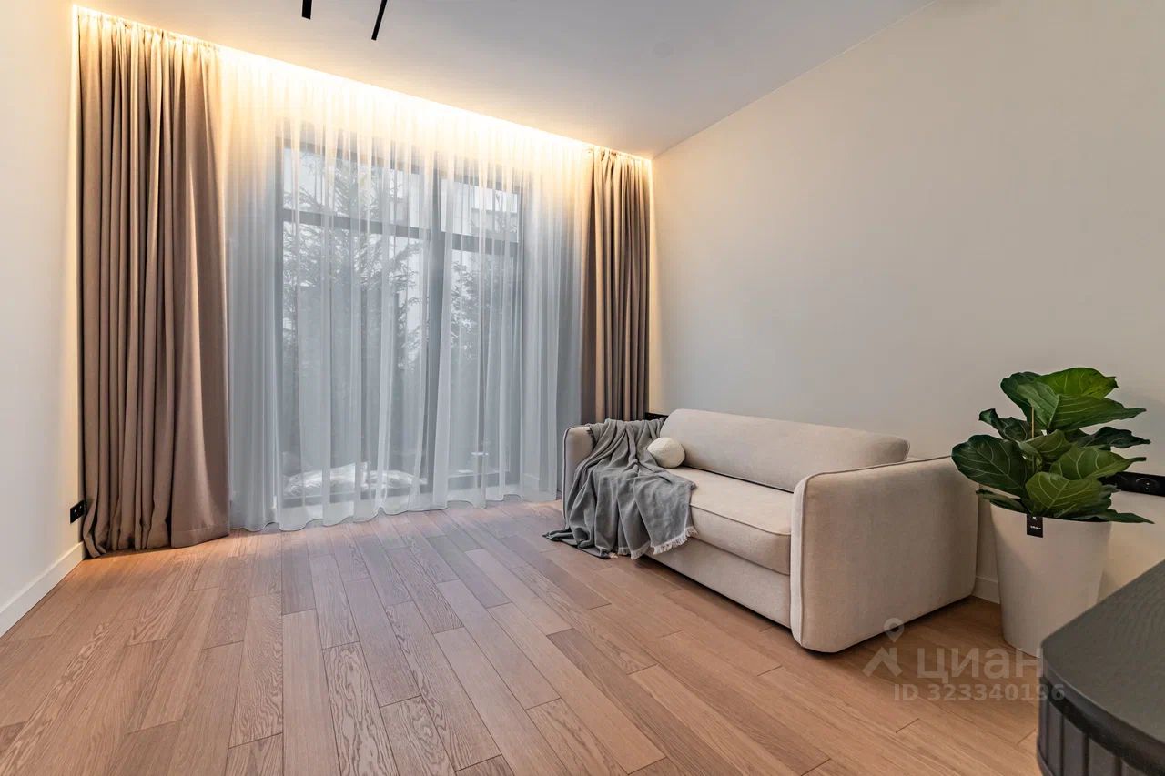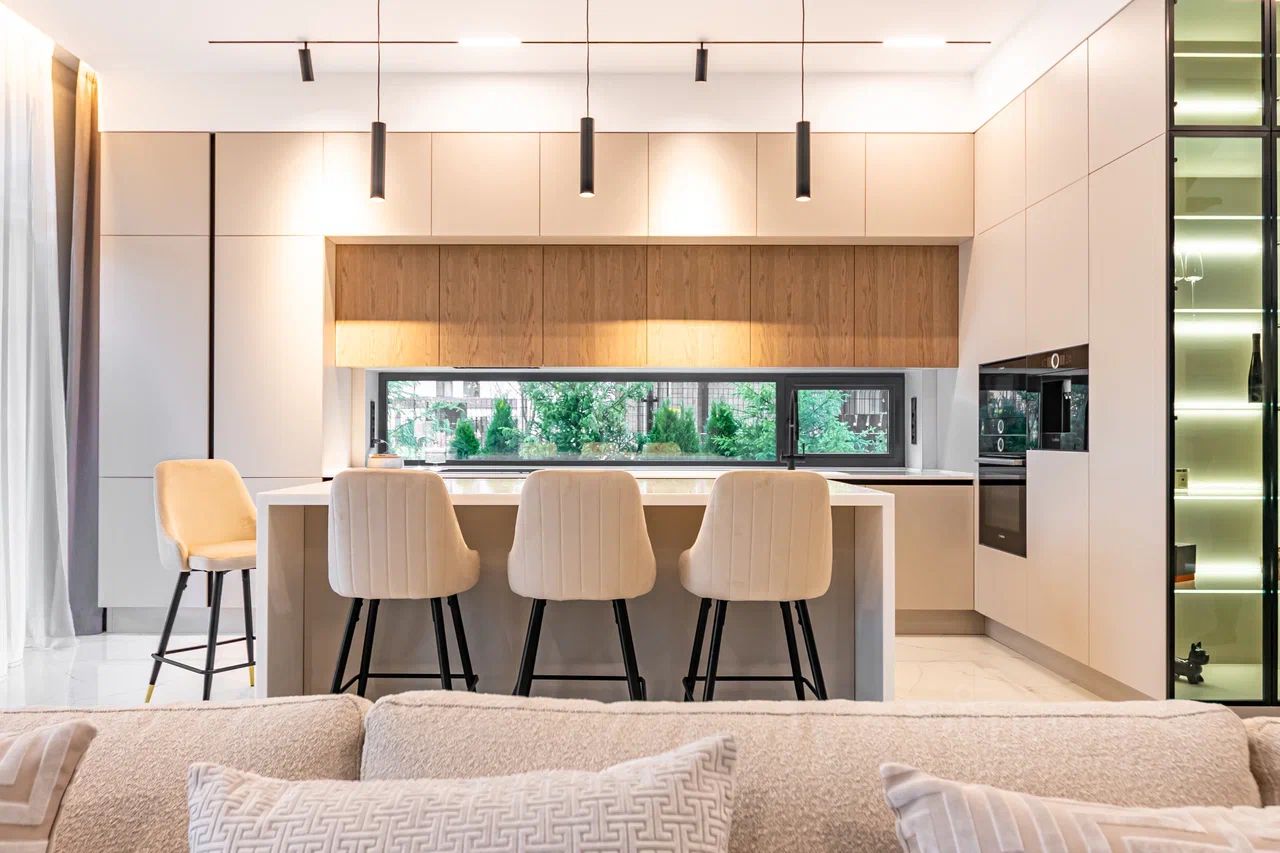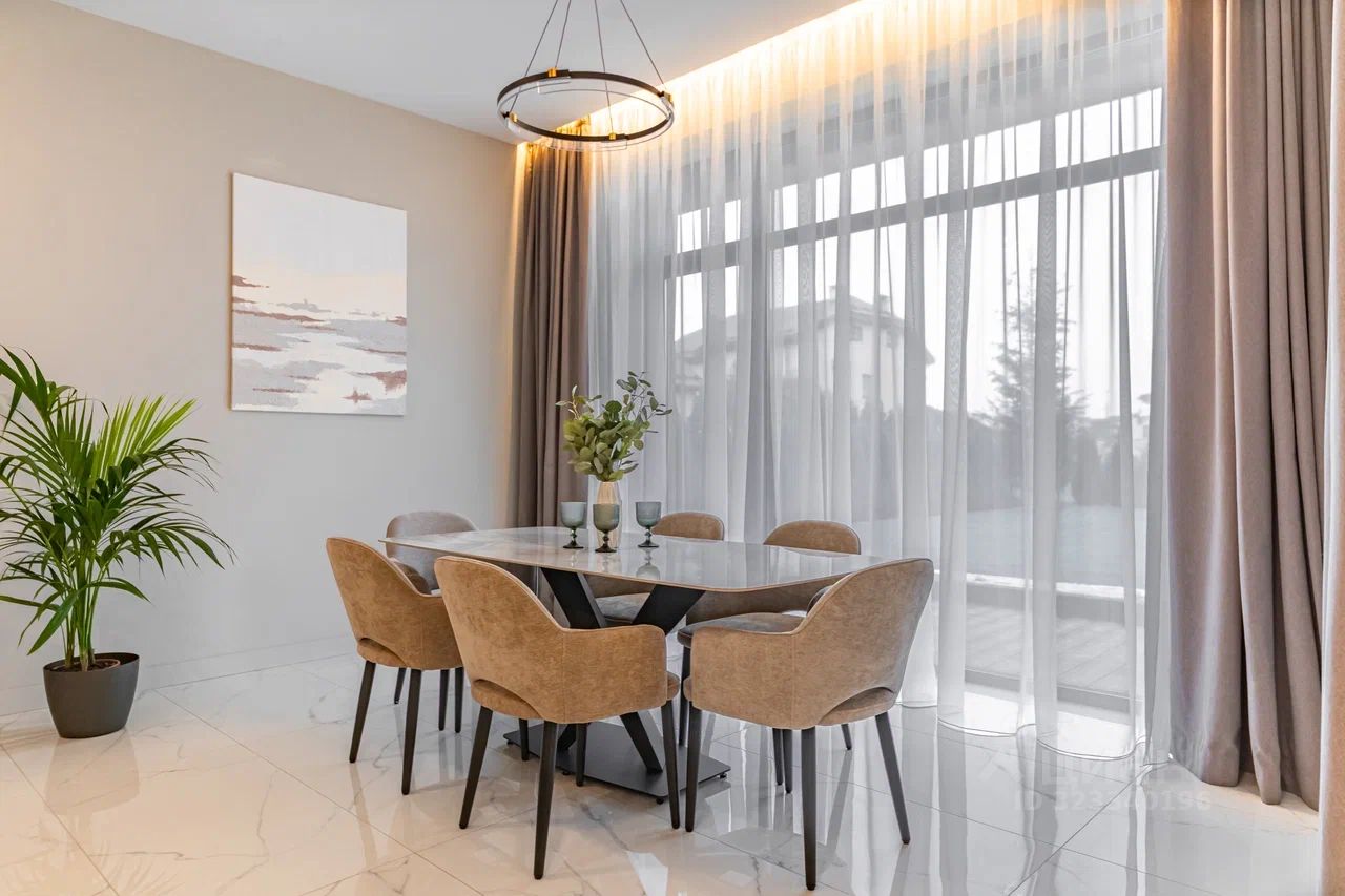 Дом характеризуется высокими потолками и огромными окнами в пол, что создает ощущение простора и наполняет помещения естественным светом. В качестве дополнительного удобства - собственная финская сауна, где можно расслабиться после насыщенного дня.