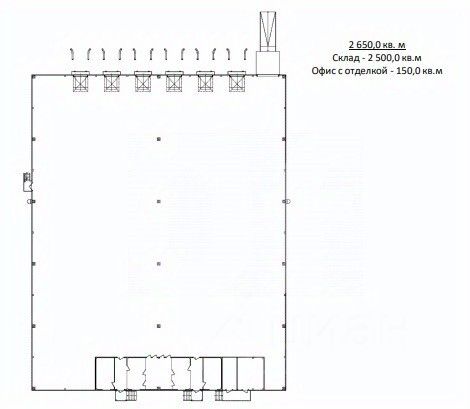 Общая площадь: 2 650 кв. м Склад: 2 500 кв. м Офис: 150 кв. м