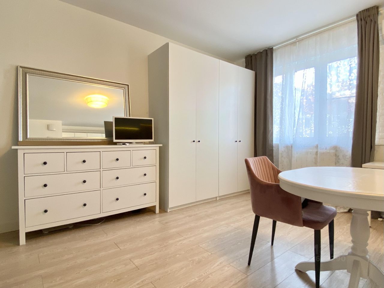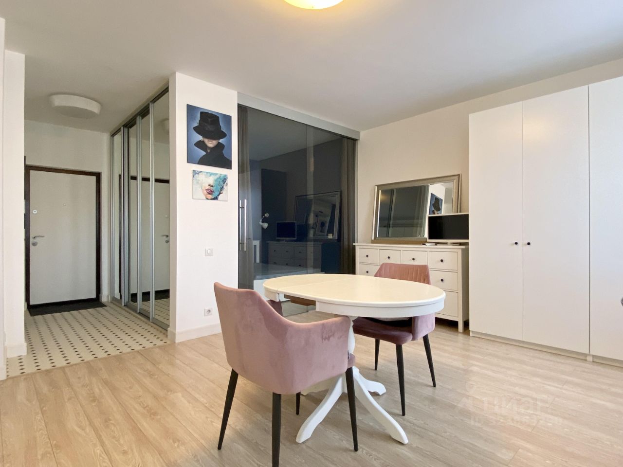 Наполнение квартиры: предусмотрено достаточно мест для хранения - вместительный гардеробный шкаф в прихожей, комод и шкаф в зоне гостиной, двуспальная кровать, встроенная кухня с плитой, духовкой и посудомоечной машиной, обеденный стол и стулья, в ванной установлена стиральная машина. Продается вместе с мебелью и техникой.
